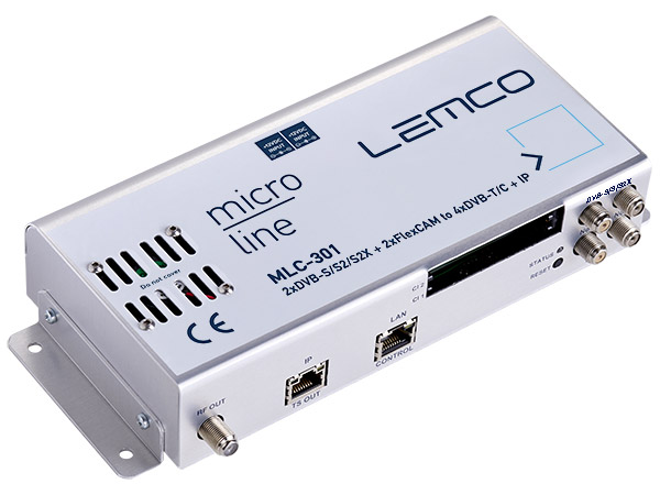 Το MLC-301 της LEMCO είναι ένα Micro Headend, ικανό να δέχεται έως 2 ανεξάρτητες δορυφορικές DVB-S/S2/S2X εισόδους (υποστηρίζει τεχνολογία Multistream) με χρήση 2 FlexCAM και να τις μετατρέπει σε 4 RF κανάλια εξόδου DVB-T/C, ενώ παρέχει και δυνατότητα διανομής IPTV με την χρήση των πρωτοκόλλων UDP/RTP (Multicast/Unicast). Η ύπαρξη 2 FlexCam δίνει τη δυνατότητα αποκωδικοποίησης κλειδωμένων προγραμμάτων ενώ η τεχνολογία Flex σημαίνει ότι ο χρήστης μπορεί να συνδέσει τα CAM είτε στην είσοδο της συσκευής είτε στην έξοδο. Υποστηρίζει τεχνολογία Pool ώστε ο χρήστης να μπορεί να διαλέξει οποιοδήποτε πρόγραμμα από τις τέσσερις εισόδους και να το αναθέσει σε οποιαδήποτε από τις 4 RF εξόδους, προσφέροντας μεγάλη ευελιξία.