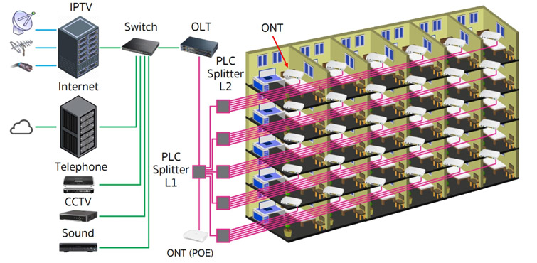 Η λύση GPON FTTR (Fiber to the Room) αποτελεί μια σύγχρονη αρχιτεκτονική πλήρως οπτικού δικτύου, όπου η οπτική ίνα επεκτείνεται έως και κάθε δωμάτιο του ξενοδοχείου.
