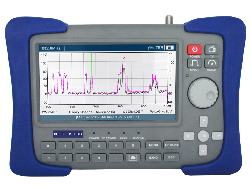 Ο επαγγελματικός μετρητής πεδίου Metek HDD είναι σχεδιασμένος για τη μέτρηση ραδιοηλεκτρικών σημάτων που μεταδίδονται σύμφωνα με τα πρότυπα DVB-S/S2, DVB-T/T2 και DVB-C. Επιτρέπει επίσης τη μέτρηση σημάτων στις ζώνες κινητής τηλεφωνίας LTE1/4G και LTE2/5G. Ο μετρητής πραγματοποιεί μετρήσεις ποσοστού σήματος στάθμης ισχύος για WiFi 2.4GHz (IEEE 802.11b/g/n).